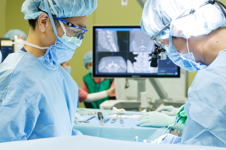 脊椎手術は年間70件程度実施しています。脊椎手術は運動神経に注意しMEPモニターとよばれる運動神経を常にモニタリングしながら手術を行っています。